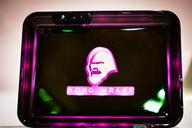 This Light up tray starts as one of the colors below and has 7 different color modes (two types of green, teal, blue, purple, red, and a party mode)