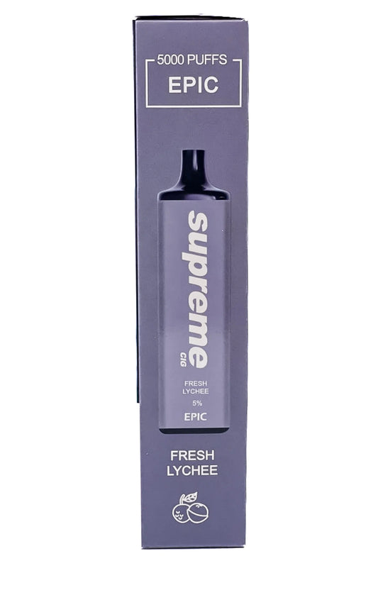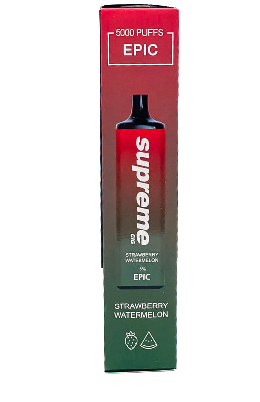 The Supreme Epic Disposable Vape delivers up to 5000 puffs of bold, flavorful vapor in a sleek, portable design. Powered by a 1500mAh built-in battery and pre-filled with 13ml of premium 5% nicotine salt e-liquid, this disposable vape offers long-lasting performance with no refilling, charging, or maintenance required. Featuring an advanced mesh coil for smooth hits and rich flavor, the Supreme Epic comes in over 20 delicious flavors including Chewy Bear, Cool Mint, Strawberry Banana, and Cubano. Compact, convenient, and packed with satisfaction, the Supreme Epic is the perfect choice for vapers who want powerful performance and hassle-free use in one device.